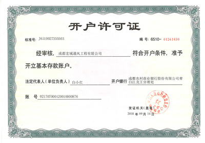 | 宏域通風安全生產許可證 | 宏域通風銀行開戶許可證 |